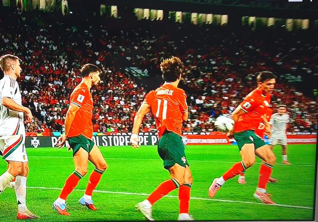 90+5' Nuno Tavares, quando progredia no seu corredor esquerdo, foi claramente pontapeado por Dániel Lukács que apenas quis parar e destruir a jogada: mais uma falta tática e uma entrada negligente que foi bem sancionada disciplinarmente.