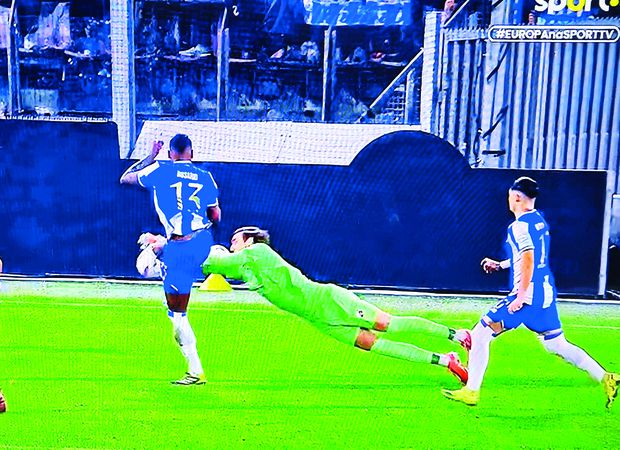 55’ Sem penálti. O guarda- redes do Utrecht, Vasilis Barkas, defende a dois tempos, e na segunda vez toca com ambas as mãos na bola e só depois, fruto desse salto todo esticado e após tocar no esférico, há o contacto natural e sem falta com Pablo Rosario.