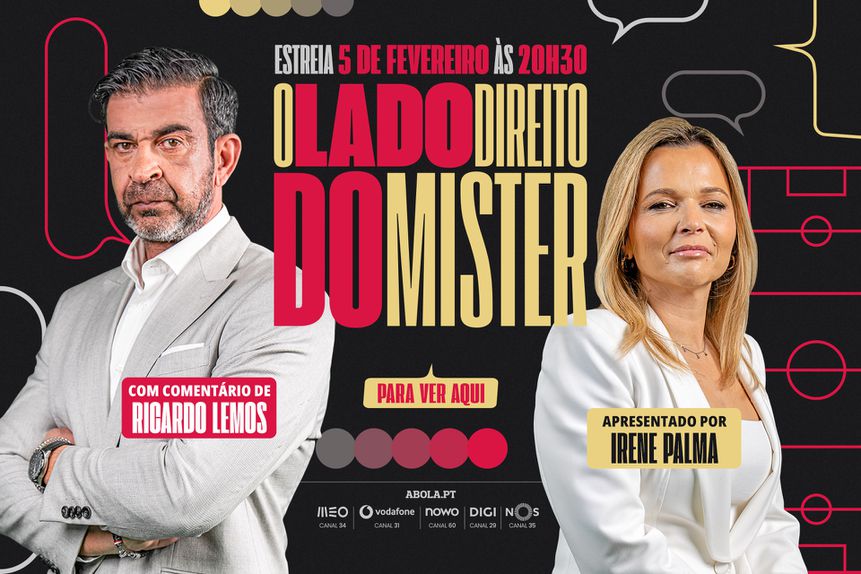 A BOLA estreia O Lado Direito do Mister, o novo videocast semanal que revela o lado invisível do jogo: a comunicação. O programa terá o comentário de Ricardo Lemos e será apresentado por Irene Palma e o antigo diretor de comunicação do futebol do Benfica vai trazer para o ecrã a experiência de quem viveu os bastidores, as crises e os momentos decisivos que moldam o futebol português.