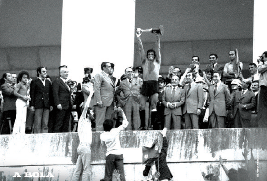Foi no dia 9 de junho de 1974 que esta fotografia icónica, de Vítor Damas a levantar a nona Taça de Portugal do Sporting e a primeira da história do futebol português em regime democrático, foi tirada.