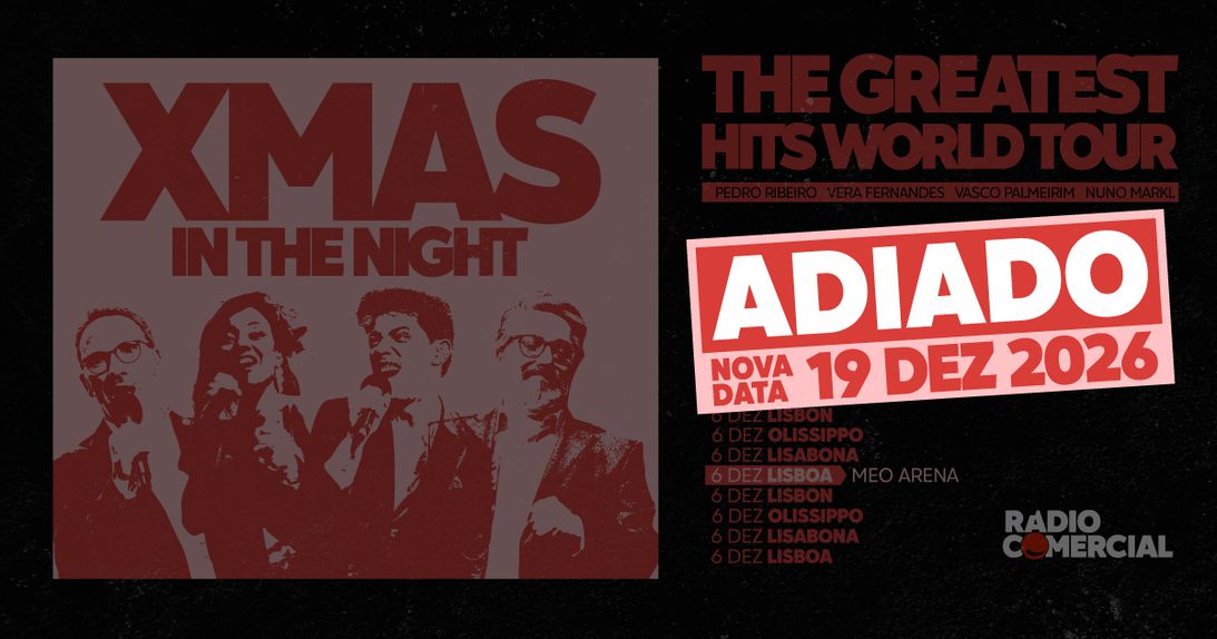 O espetáculo Xmas in the Night, protagonizado pela equipa das manhãs da Rádio Comercial, foi adiado para 19 de dezembro do próximo ano, anunciou a rádio nas redes sociais.