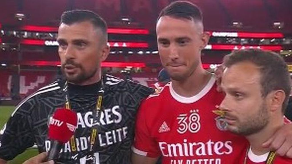 O treinador dos guarda-redes do Benfica, Fernando Ferreira, durante os festejos da conquista do título que ainda decorriam no relvado da Luz, após a vitória (3-0) das águias sobre o Santa Clara no sábado, fez sentida homenagem a Ricardo Leite, que faleceu em julho do ano passado, com 37 anos, quando desempenhava funções como treinador de guarda-redes da seleção de Cabo Verde, numa carreira que já tinha passagens por Belenenses, Sporting, Vitória de Guimarães e Benfica.