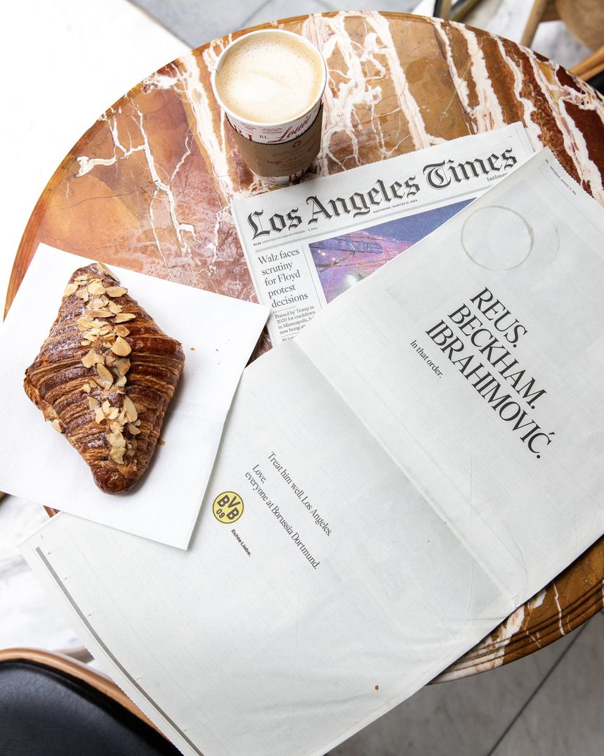 O Dortmund não olhou a meios na hora de se despedir de uma das maiores lendas do clube, dedicando uma página do jornal LA Times a Marco Reus, que aos 35 anos deixou o clube alemão para rumar à MLS, para reforçar o LA Galaxy.
