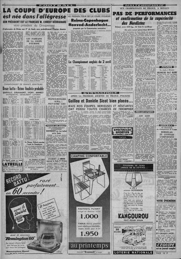 O regulamento foi escrito à mão por Jacques Ferran, jornalista que na altura tinha 34 anos - doou esse manuscrito à UEFA, que o terá perdido - e no dia 4 de abril o L’Équipe titulou: «A Taça Europeia de Clubes nasceu envolta em alegria».