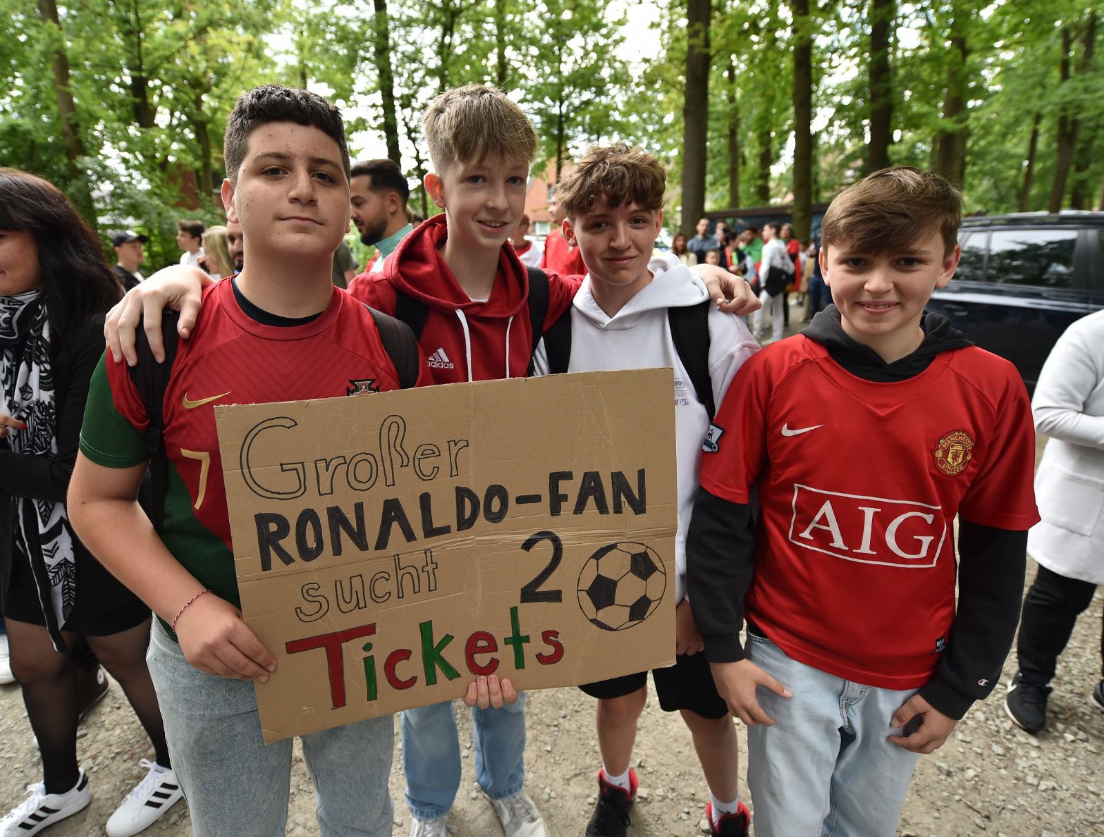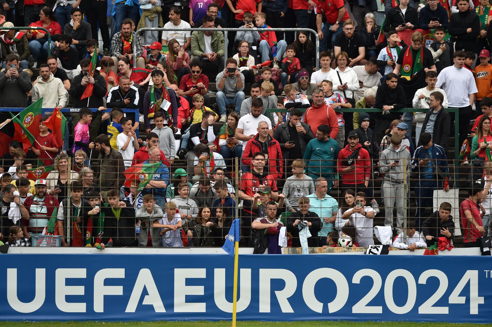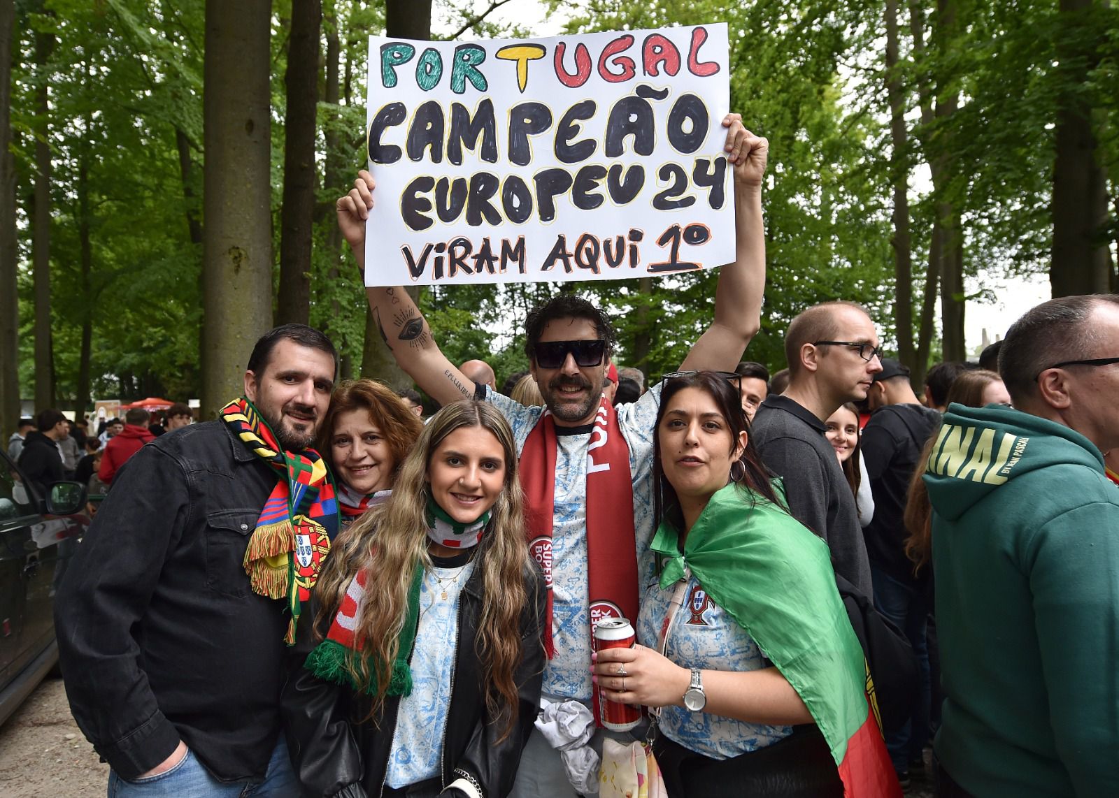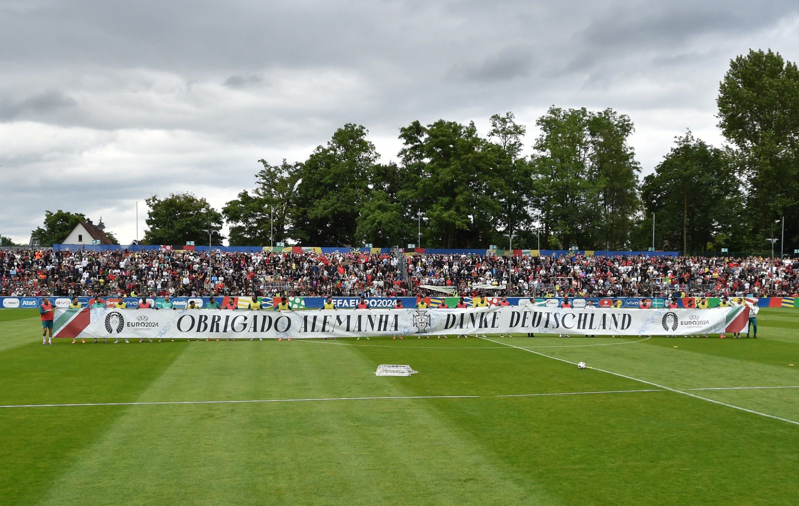 Dos mais novos aos mais velhos, ninguém quis perder a oportunidade de ver de perto os heróis que, a partir de terça-feira, dia do duelo de estreia no Europeu com a República Checa, representarão Portugal no Campeonato da Europa. Enquanto não chegava a hora, uns iam-se entretendo a jogar futebol, outros iam ganhando forças junto das roulottes de bifanas, petisco tipicamente português e que, por estes dias, deixa o seu aroma nos ares da Renânia do Norte. Na sequência da polémica dos bilhetes à venda no mercado negro por 500 ou mais euros — em particular aqueles que foram distribuídos pela UEFA e pela autarquia de Gutersloh — e após muitos sinais de indignação por parte da comunidade portuguesa na região, a FPF decidiu entregar em mão os 1600 convites a adeptos subscritores do Portugal+ residentes na Renânia Vestefália Norte, todos identificados individualmente.