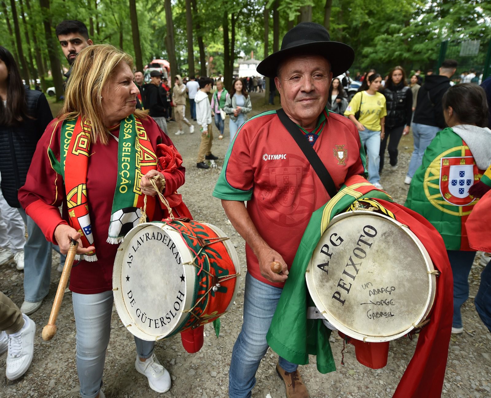 Desde muito cedo, milhares de emigrantes portugueses começaram a encher as artérias adjacentes ao estádio onde vai realizar-se o treino. Bandeiras, caras pintadas, muitos cânticos, bombos e gritos por Portugal encheram de cor e alegria as ruas de Gutersloh.