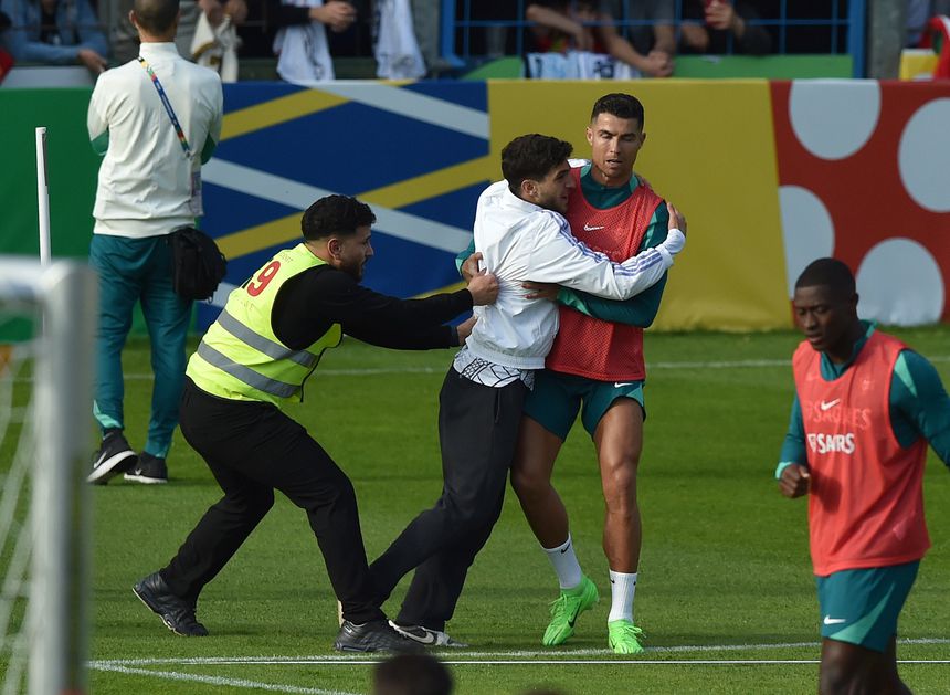 Momento em que um adepto conseguiu chegar perto de Cristiano Ronaldo (MIGUEL NUNES)