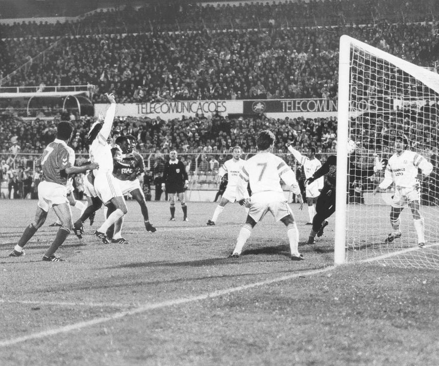 Eu estava lá. Em reportagem. E ainda hoje estou para saber como aconteceu aquele golo. Só me lembro que a bola entrou na baliza dos franceses e estes, de braços no ar, indignados, barafustavam a protestarem com veemência.