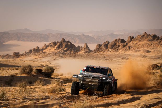 João Ferreira mostrou garra e consistência durante a segunda parte da exigente etapa maratona do Rally Dakar, esta quinta-feira, e foi premiado com um promissor sétimo lugar. Ao volante do seu Toyota Hilux, o piloto português enfrentou 372 quilómetros cronometrados entre o bivouac - onde os concorrentes passaram a noite, no meio do deserto saudita, após a primeira fase da longa jornada (4.ª e 5.ª etapas) - e a cidade de Hail, terminando a especial a 6.07 minutos do vencedor do dia, o norte-americano Mitch Guthrie, que assinou uma performance dominante aos comandos de um Ford, com o tempo de 3:54.46 horas.