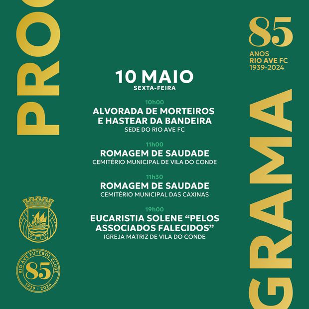 Celebramos hoje o 85º Aniversário do nosso Rio Ave Futebol Clube.