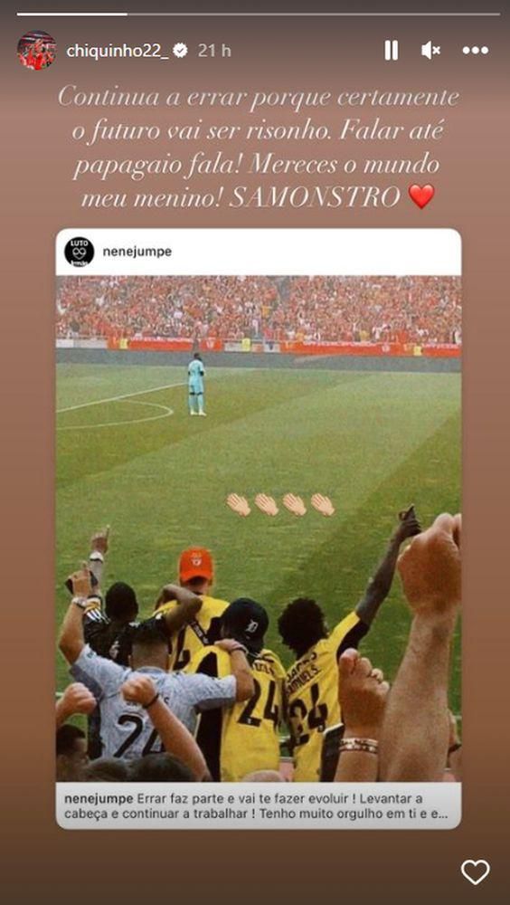 O futebolista acabou por ser defendido das críticas pela mãe, na rede social Instagram, com Chiquinho, companheiro de equipa do guardião, a partilhar a publicação e a deixar uma mensagem de apoio.