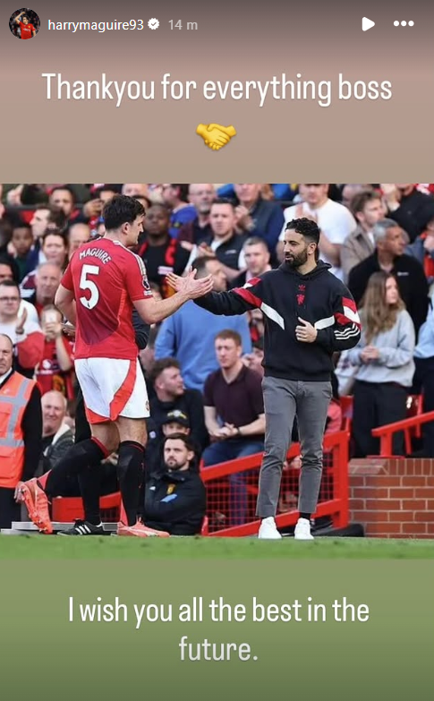 A mensagem de despedida de Harry Maguire para Ruben Amorim