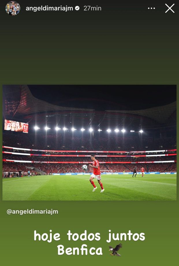 Ángel Di María recorreu às redes sociais, em dia de dérbi eterno, para apelar à união no Benfica.