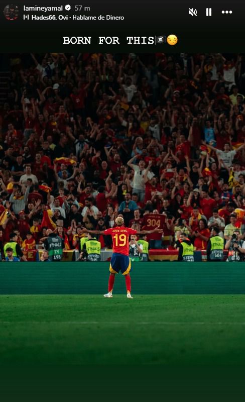 Através do Instagram, o jogador do Barcelona publicou um story com uma fotografia sua a celebrar um golo marcado por La Roja, com a seguinte mensagem: «Nascido para isto.»