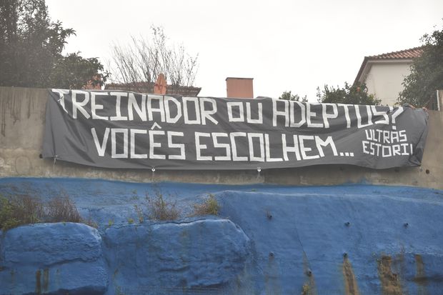 A mensagem afixada numa tarja negra fora o Estádio António Coimbra da Mota, mas visível dentro do mesmo era inequívoca: «O treinador, ou os adeptos. Vocês escolhem».