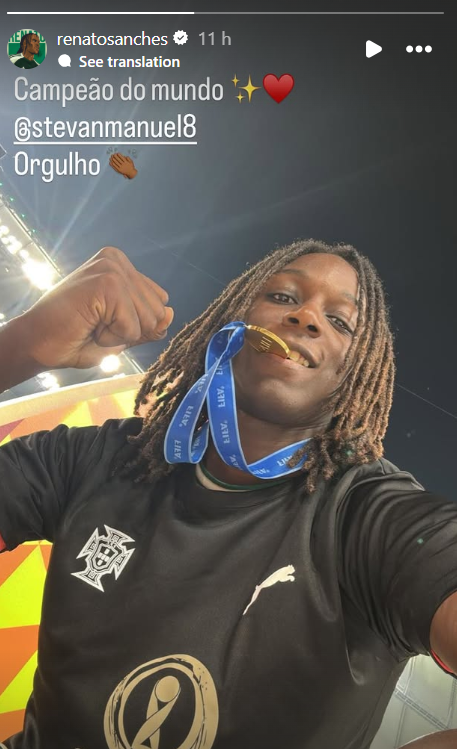 «Campeão do Mundo Stevan Manuel. Orgulho», escreveu nas stories do Instagram o médio, atualmente ao serviço do Panathinaikos, por empréstimo do PSG.