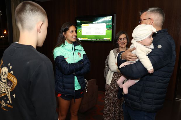 Nuno Pereira, Vera Lopes, Vasco Pereira e Francisca Nazareth Lopes Pereira recebem a reportagem de A BOLA na mesma sala em que se juntaram no verão para assistir aos jogos da histórica participação da seleção feminina no Mundial que se disputou em julho.