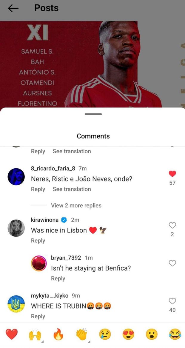 A verdade é que não mereceu e a mulher do jogador reagiu à publicação das águias no instagram sobre a equipa escolhida para jogar de início: