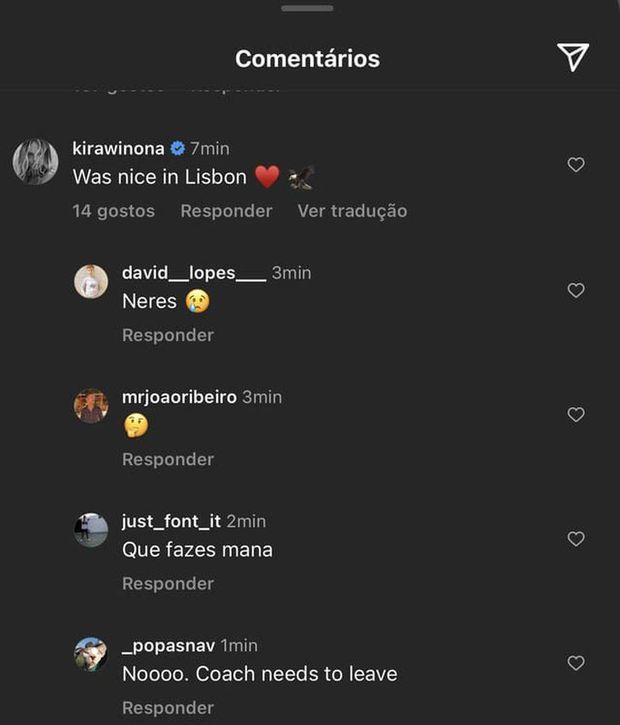 Veja o comentário da mulher de Neres, cujo perfil é Kirawinona - o nome da modelo alemã é Kira Winona.
