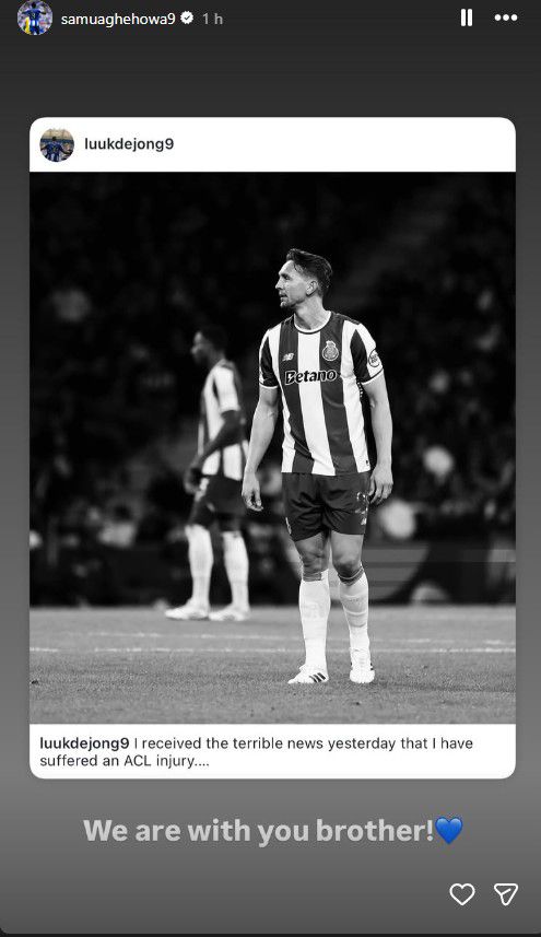Samu, rival direto de Luuk de Jong na luta por um lugar na equipa do FC Porto, deixou uma mensagem na sua própria conta de Instagram, mas com a mesma linha de raciocínio: «Estamos contigo, irmão!»