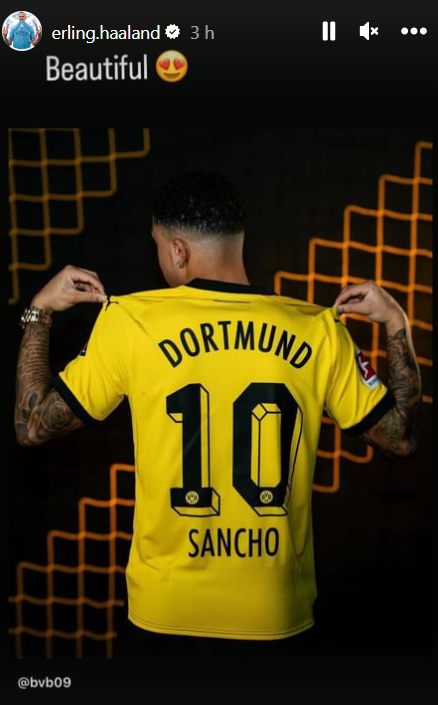 O avançado norueguês, que em 2019/20 e 2020/21 partilhou o balneário do Dortmund com o internacional inglês, reagiu ao anúncio nas redes sociais: «Beautiful» (bonito).