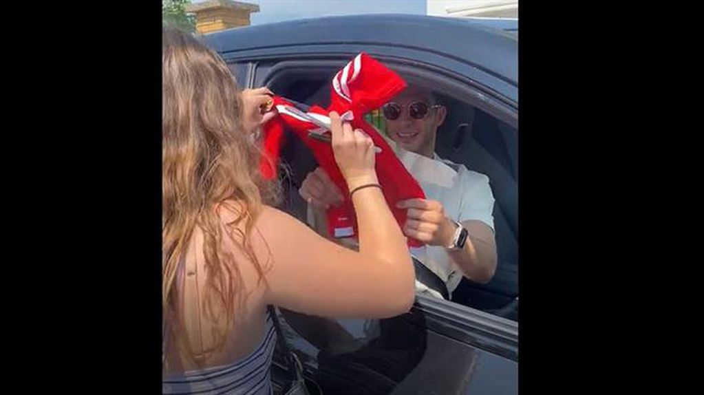 Uma adepta do Benfica de nome Rita esteve à porta do centro de treinos do Wolverhampton e apanhou o avançado mexicano Raúl Jiménez, pedindo-lhe que autografasse uma camisola do Benfica e também a fita da universidade.