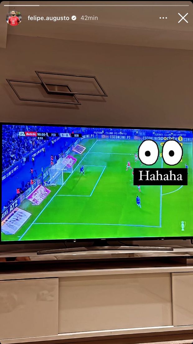 Felipe esteve bem atento à goleada do FC Porto ao Benfica no clássico e, mesmo à distância, fez questão de deixar uma mensagem em tom provocatório e com risos à mistura.
