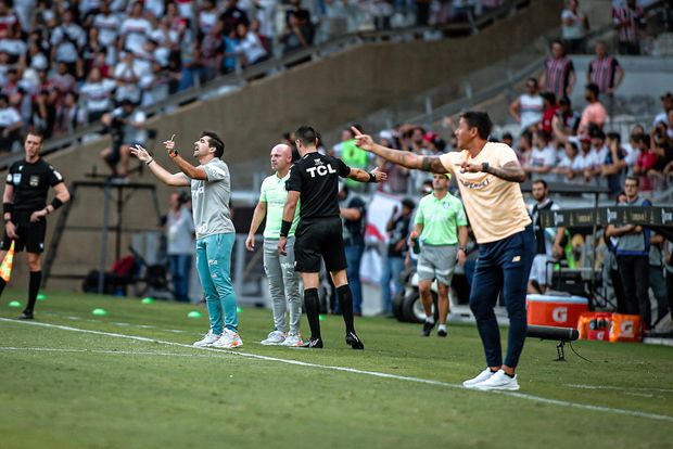 83' O técnico do São Paulo, Thiago Carpini, já não pode ficar a rir-se de Abel Ferreira. Também ele acabou de ver cartão amarelo