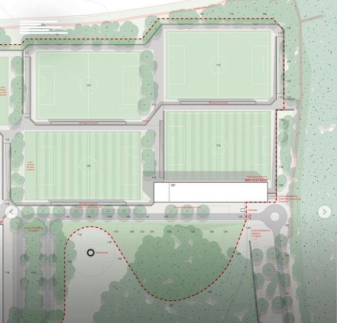 Haverá ainda com nove campos relvados com dimensões oficiais (quatro dos quais com bancadas com 400 lugares e aptos para a realização de jogos de diversos escalões das competições nacionais) e iluminação. Espaço ainda para um campo relvado de futebol de 7.