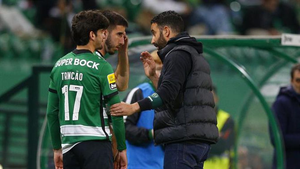 Rúben Amorim foi questionado sobre o momento em que gesticulou, quando Francisco Trincão caiu na área, aos 59', e ficou a pedir penálti, tendo-lhe ainda sido perguntado o que é preciso para os leões beneficiarem de uma grande penalidade.
