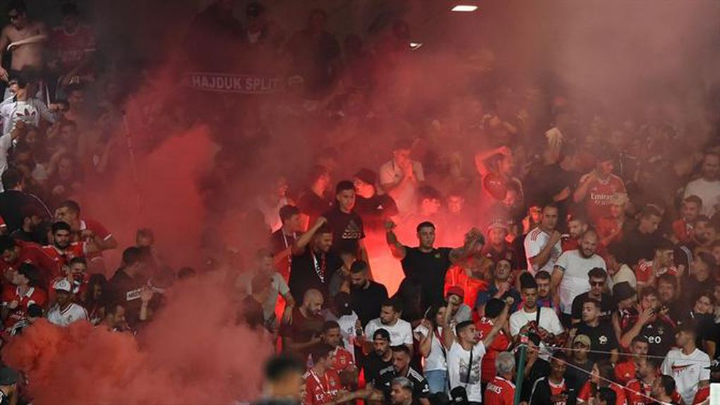 Nos festejos do primeiro golo do Benfica frente ao Gil Vicente - o penálti apontado por Di María -, foram vários os petardos que rebentaram num dos topos do estádio ocupado por adeptos do clube encarnado.