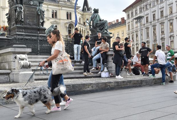 Concentração na Praça Central da cidade austríaca, que começa a ficar pintada de verde