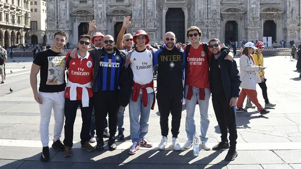 À torreira de um sol que parecia surpreender os milaneses, já se começou a ouvir falar português, pessoas sem adereços das águias. Mas o grosso dos benfiquistas começou a chegar esta quarta-feira à cidade e à Piazza del Duomo. São esperados cerca de seis mil e, como habitualmente, devem deixar a marca Benfica na cidade, sendo que esta manhã adeptos dos dois clubes se encontraram e confranternizaram, tirando fotos em conjunto.