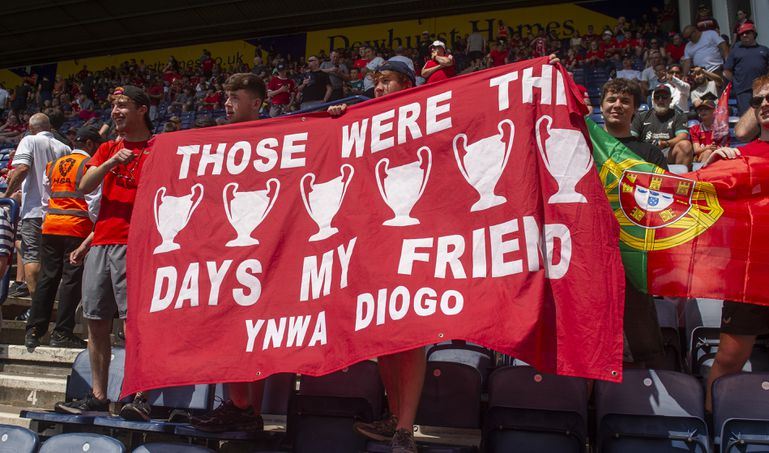Os adeptos do Liverpool uniram-se e cantaram, de forma sentida, a música de Diogo Jota antes do começo da partida frente ao Preston.