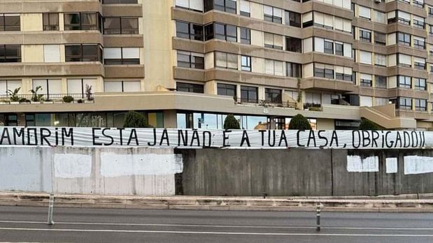 Adeptos do Sporting expõem tarja contra Rúben Amorim