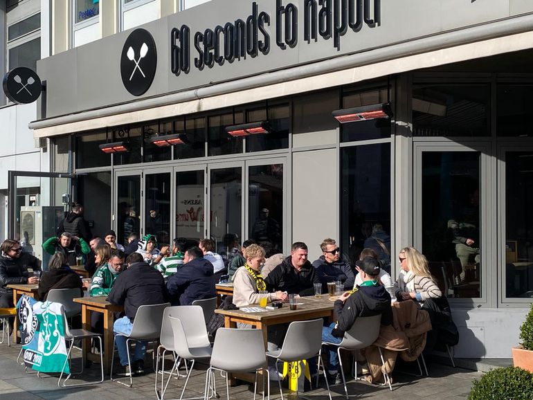 A algumas horas do jogo para a UEFA Champions League, apoiantes leoninos já se começam a juntar na fan zone da cidade alemã