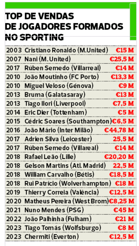 a nível de formação a nível mundial, com Cristiano Ronaldo a ser a referência da cantera leonina.