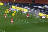 O 2-0 chegou segundos depois, com Carreras a receber a bola de Kokçu na meia esquerda, a tirar Vítor Carvalho da frente, e a disparar para a área sem mais oposição, rematando cruzado para o 2-0, aos 28', que encostou os guerreiros às cordas.