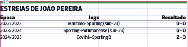 Nas restantes duas estreias de João Pereira, dois empates. Ambos a zero na Liga Revelação. O primeiro na Madeira, diante do Marítimo — curiosamente o mesmo adversário com que João Pereira se despediu dos relvados, em 2022/2023 — e na época seguinte, em Alcochete, diante do Portimonense, também nos sub-23.