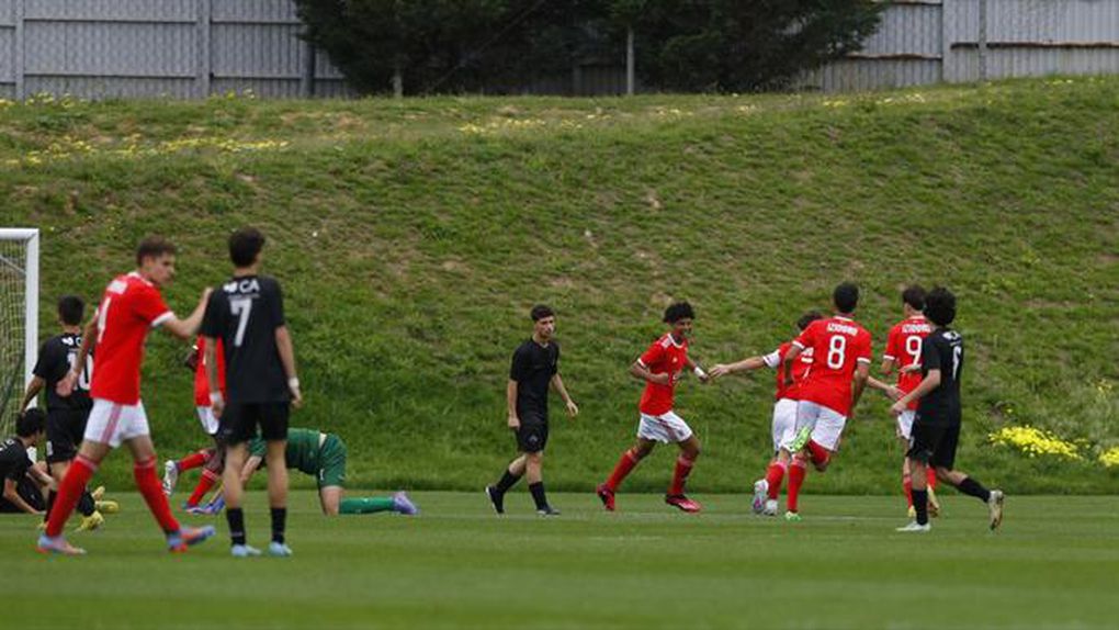 O duelo entre opostos que se disputava no Seixal - o Benfica, líder da fase final do campeonato nacional de Juvenis, recebia a Académica, última classificada - indiciava uma diferença de poderio que acabou por confirmar-se (4-0).