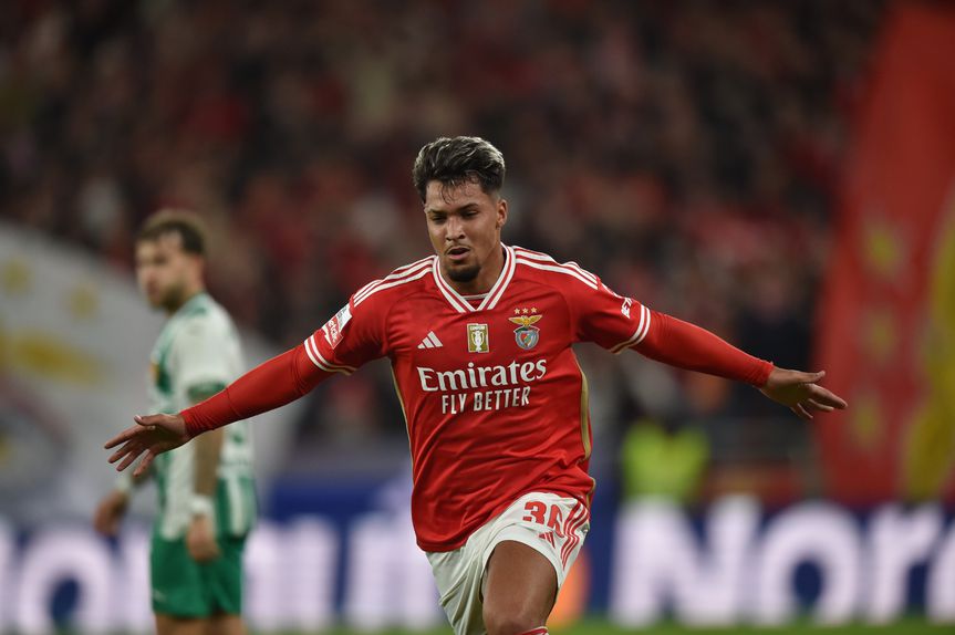 Suplentes do Benfica: Samuel Soares, Tomás Araújo, Jurásek, Chiquinho, Florentino, Guedes, Tiago Gouveia, Musa e Marcos Leonardo.