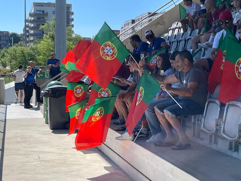De salientar que nas bancadas do estádio estão muito emigrantes portugueses que quiseram vir apoiar a equipa feminina, com Kika Nazareth e Ana Borges a serem das mais acarinhadas. Bandeiras a esvoaçar e gargantas afinadas a puxar por Portugal, é o que se ouve por aqui.