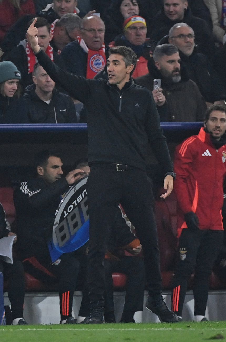 Faltou termos um bocadinho mais de posse de bola. A nossa intenção era criar uma dinâmica de três médios e o Akturkoglu a jogar como n.º 10 e o Amdouni a ponta de lança, para fazermos um losango. Nós temos médios bons de bola, de posicionamento, habituados a este tipo de pressão. Infelizmente, não o conseguimos aplicar na primeira parte e depois sabíamos que a espaços, com o tempo, o jogo poderia acalmar e termos mais bola. Infelizmente não conseguimos. Assumi esta estratégia perante os jogadores. Senti que, se pudéssemos sair das referências individuais e ter mais bola, poderia resultar. Em situação de ataque, a linha defensiva do Bayern deixa um contra um, mas tenho de assumir a responsabilidade, era minha ideia trazer gente para o jogo, tirar referências individuais do Bayern. São muito fortes nos duelos um contra um, são muito fortes e amassam e tentámos encontrar zonas neutras para ter jogo, mas não conseguimos. Houve respeito quando o Bayern tinha bola, mas faltou-nos termos maior controlo do jogo, realmente não conseguimos. Já fechámos este jogo e já estamos a pensar no jogo do FC Porto, que é um jogo muito importante para nós. Agora faltam quatro jogos na Champions, temos seis pontos, essas são as contas com que temos de nos preocupar.