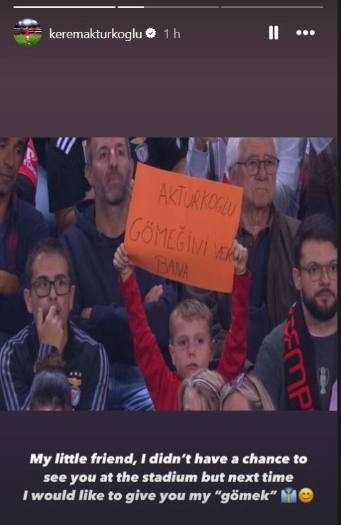 «Meu pequeno amigo, eu não tive a oportunidade de te ver no estádio, mas da próxima vez gostava de te dar a minha gomek», disse, fazendo essa promessa, sendo que o próximo jogo dos encarnados, em Portugal e para a Liga, é com o FC Porto, no Estádio da Luz, logo depois de visitar o terreno do Bayern para a Liga dos Campeões.