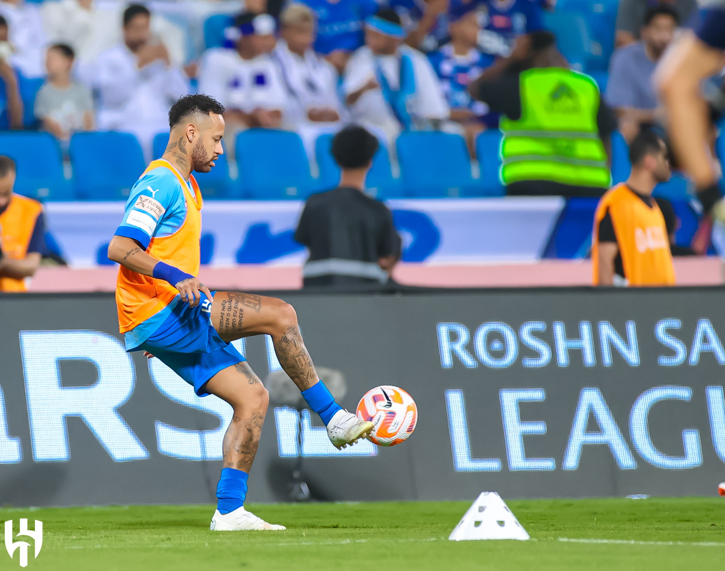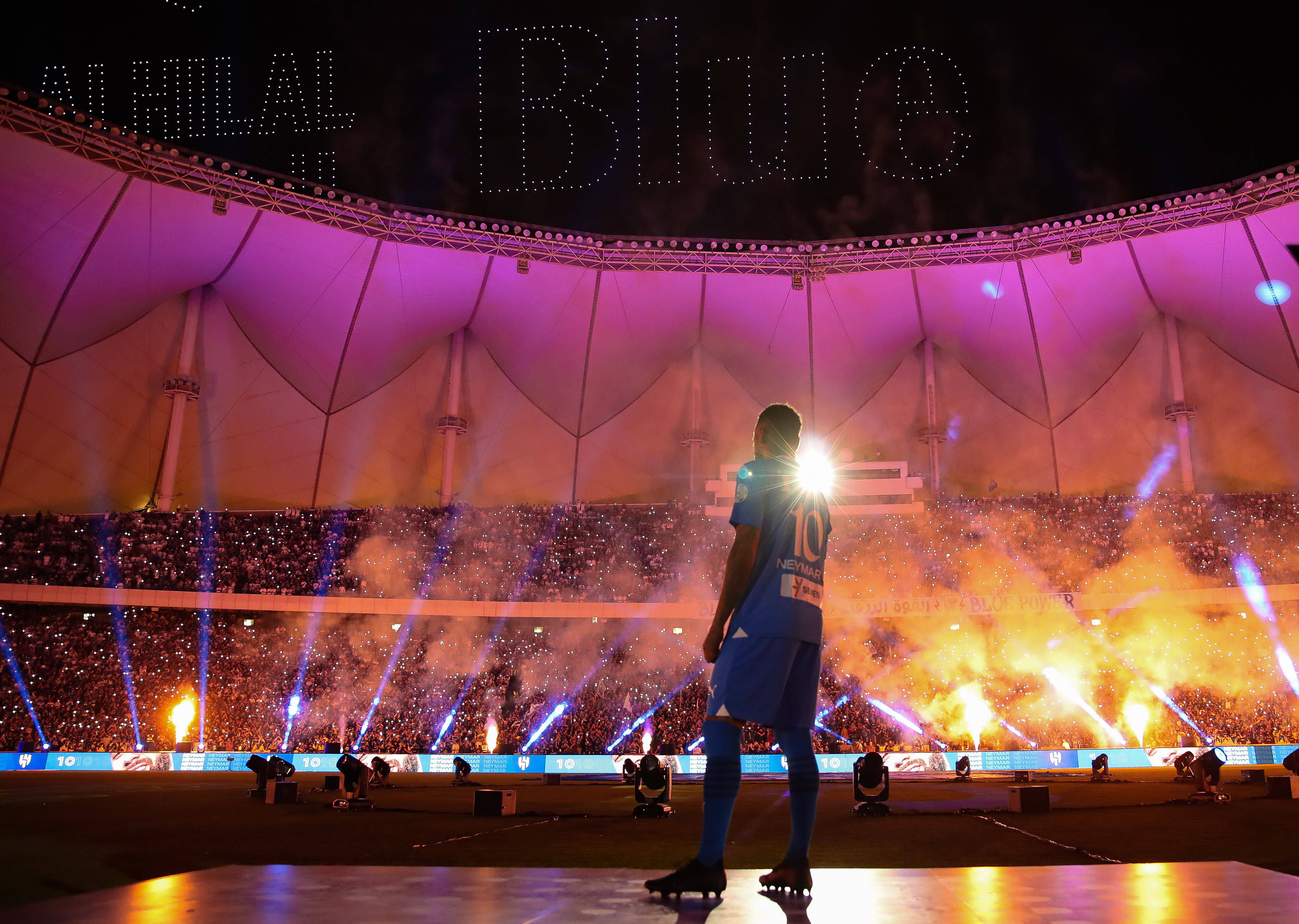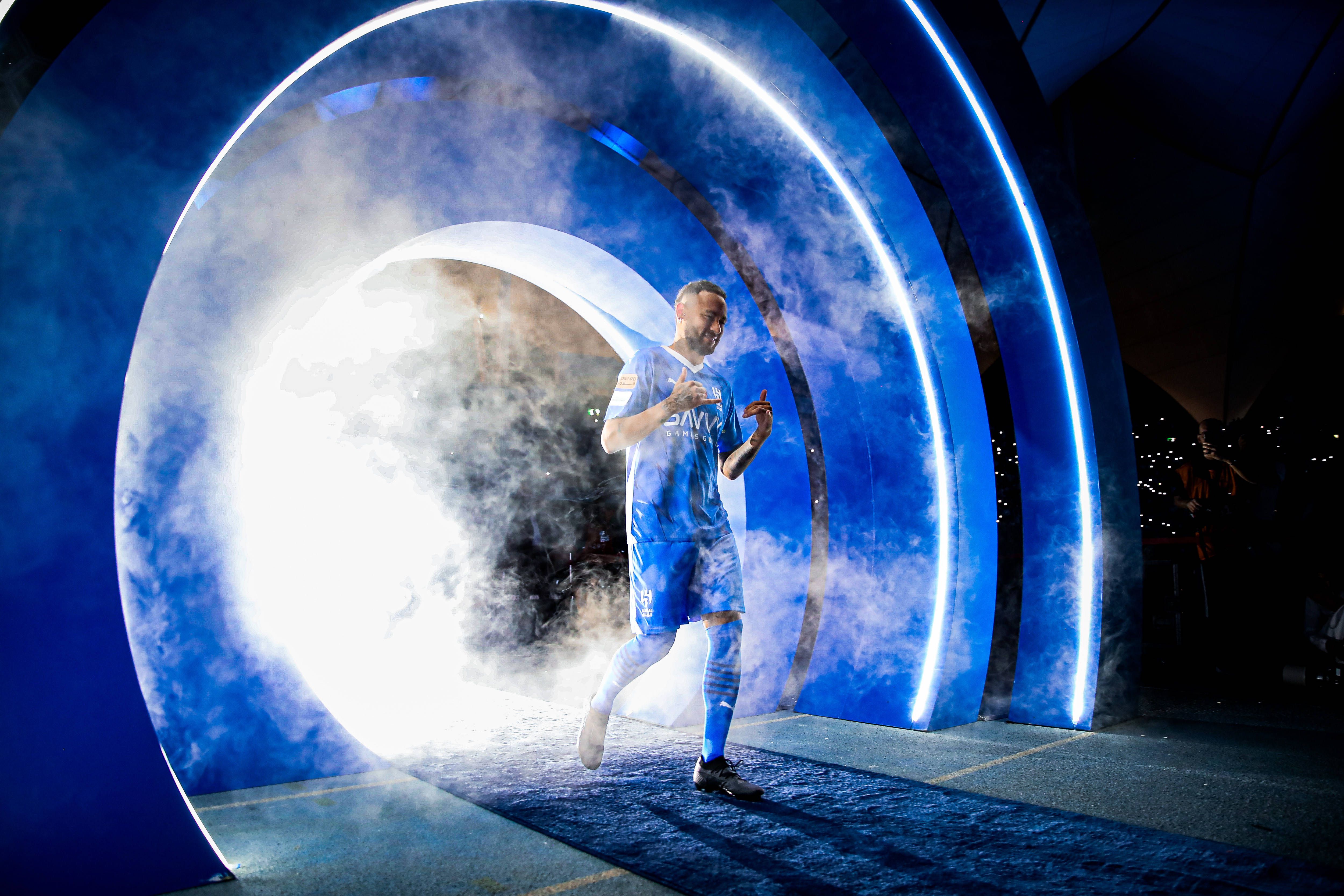 0' Neymar centrou todas as atenções durante a chegada ao estádio e o aquecimento do Al Hilal.