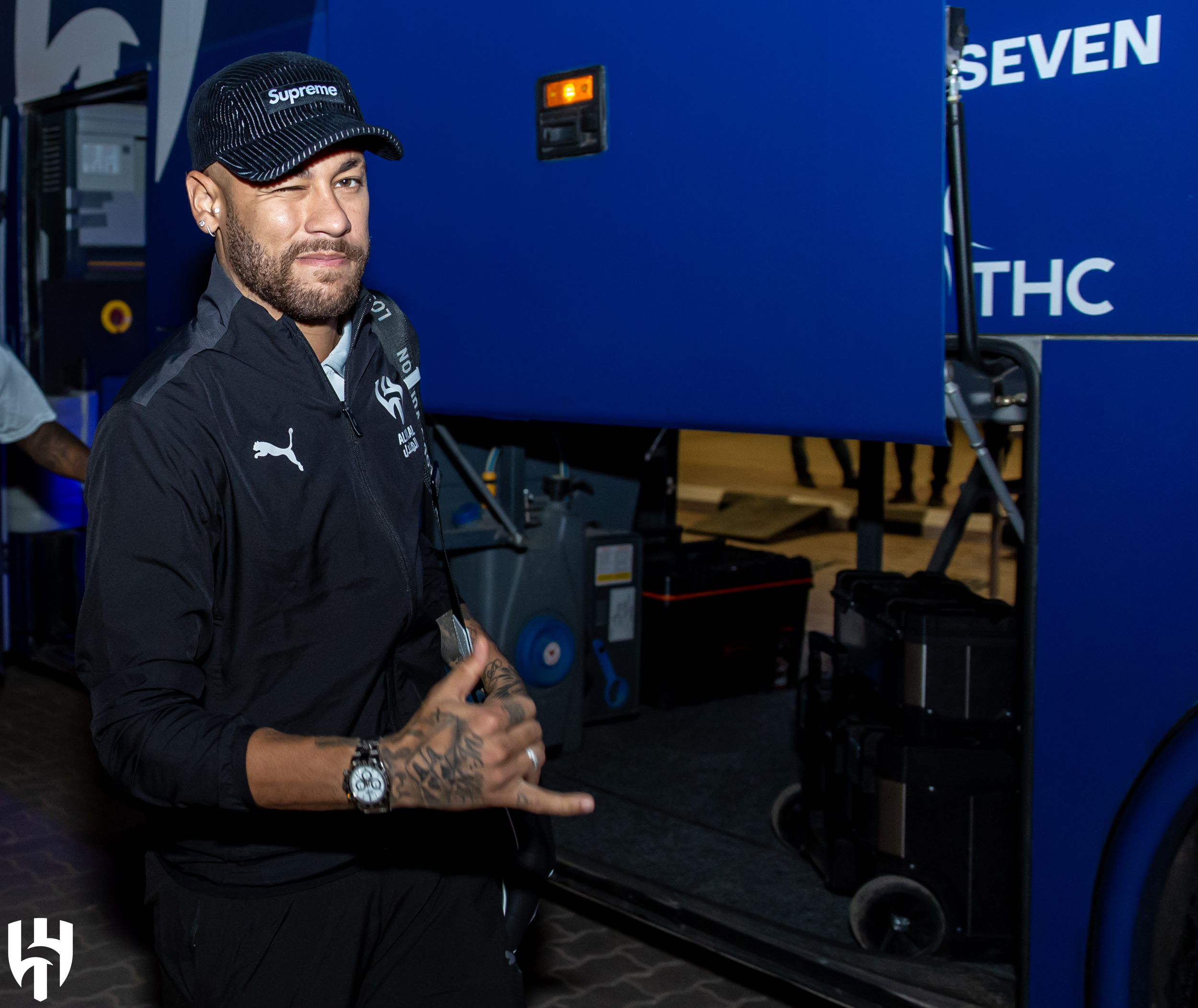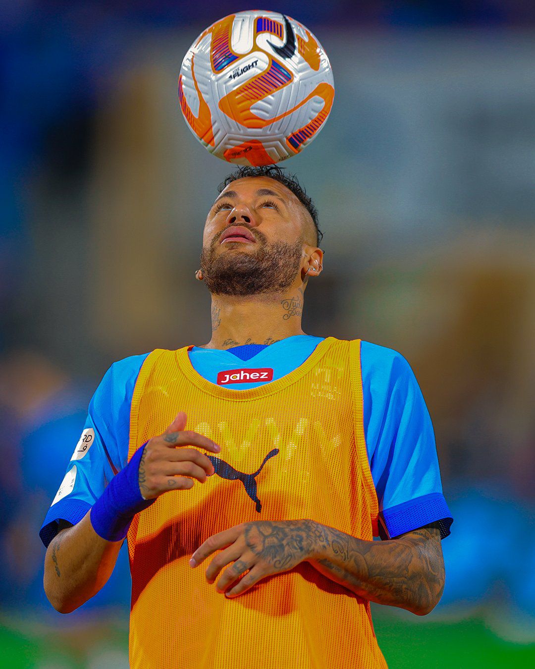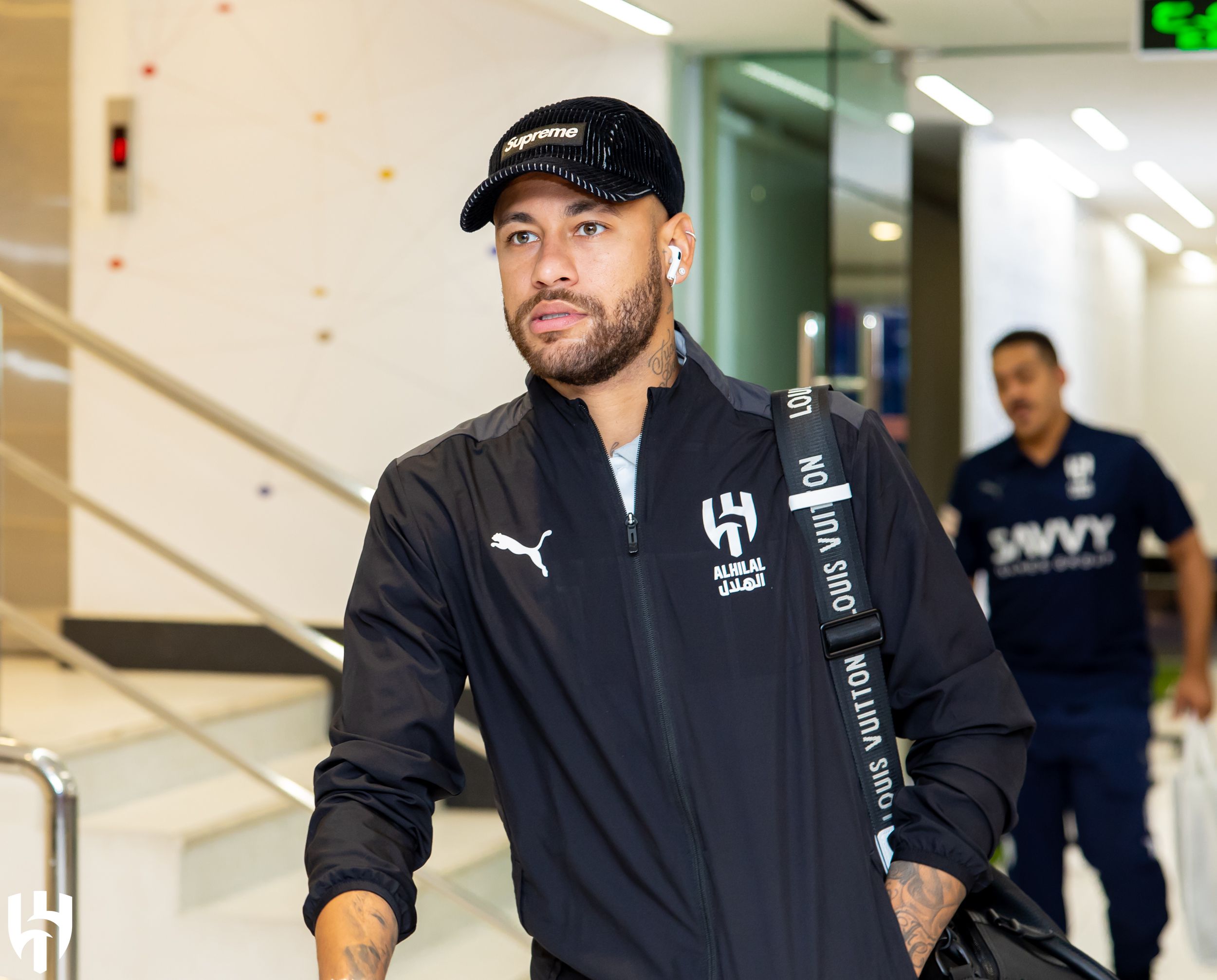 0' Neymar centrou todas as atenções durante a chegada ao estádio e o aquecimento do Al Hilal.