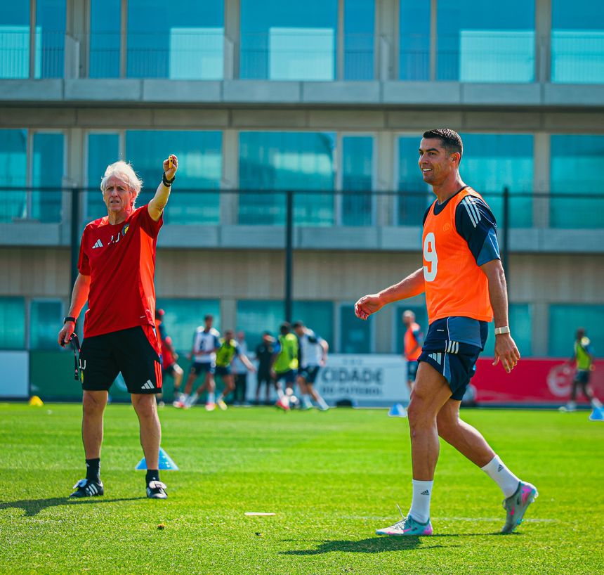 Nas imagens divulgadas pelo Al Nassr, vê-se a intensidade com que Cristiano Ronaldo e João Félix encararam o treino, assim como Jorge Jesus, a dar indicações à equipa no campo.