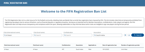 Há outros clubes sauditas que também foram sancionados pela FIFA, como Al Shabab, Damac e Al Riyadh.