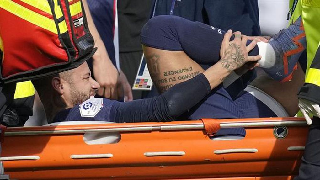 Duro golpe para Neymar nos primeiros minutos da segunda parte do PSG-Lille: uma entrada de Benjamim André torceu-lhe o tornozelo direito, obrigando a assistência em campo.