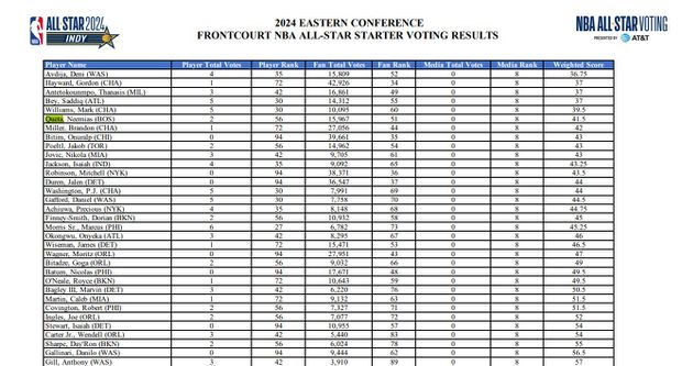 Giannis Antetokounmpo será o capitão da equipa Este, e aqui é possível ver que Neemias Queta, dos Boston Celtics, foi 49.º classificado entre os atacantes votados nesta Conferência, tendo recolhido 15.967 votos dos adeptos, dois votos dos jogadores, nenhum dos jornalistas.